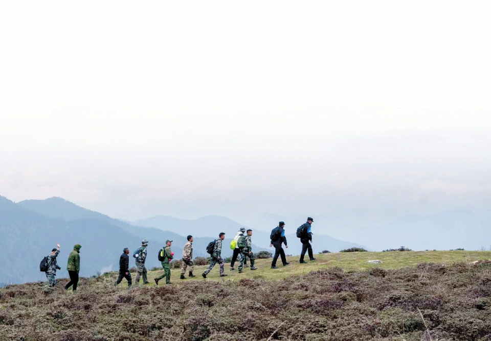 2025年5月22日,第九次川陕甘三省联合巡护大熊猫国家公园行动正式启动。图为巡护队上山巡护。 唐超摄