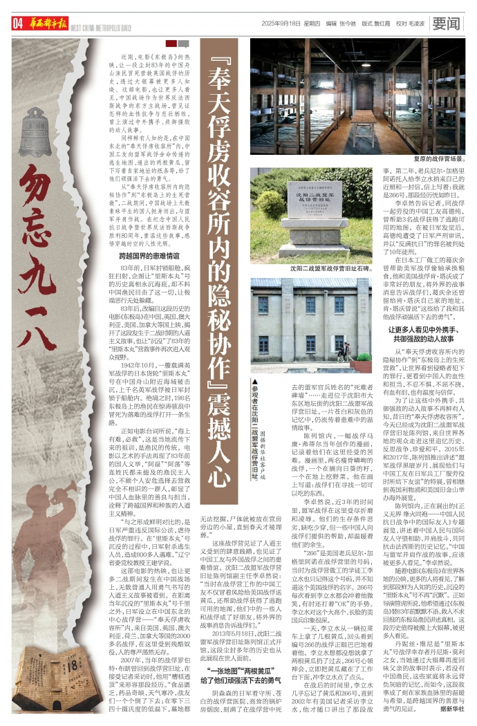 参观者在沈阳二战盟军战俘营旧址。图据新华社客户端