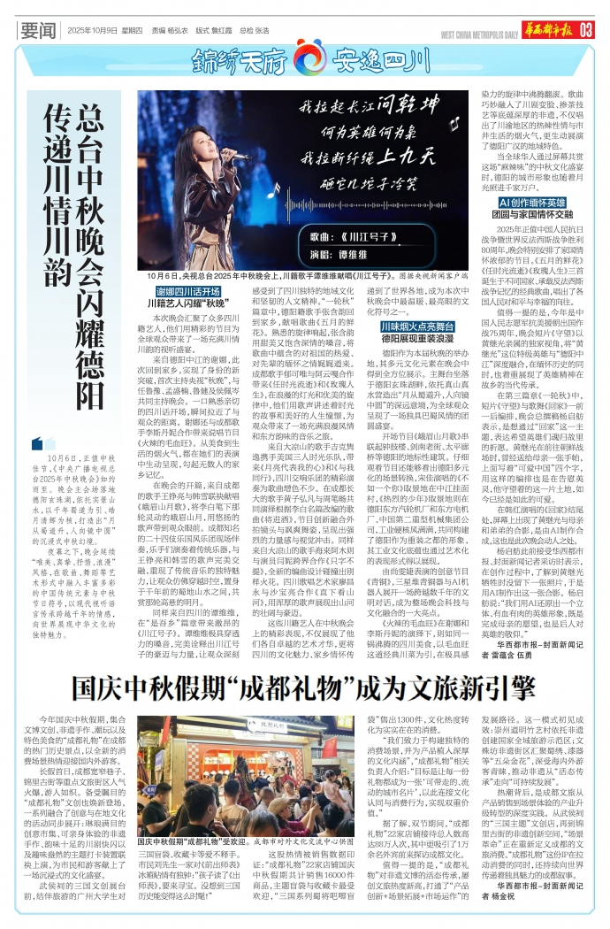 今年国庆中秋假期,集合文博文创、非遗手作、潮玩以及特色美食的“成都礼物”在成都的热门历史景点,以全新的消费场景热情迎接国内外游客。