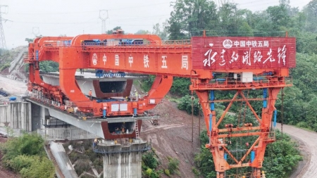 西渝高铁谢家院子大桥施工现场。中国铁路成都局集团供图