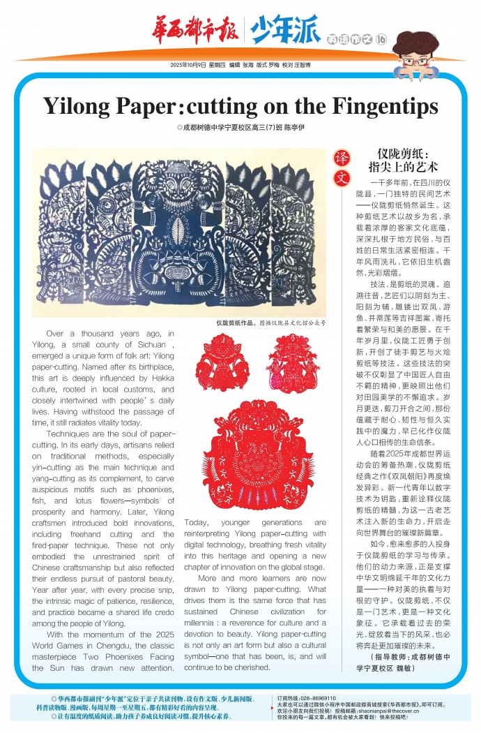 With the momentum of the 2025 World Games in Chengdu, the classic masterpiece Two Phoenixes Facing the Sun has drawn new attention. Today, younger generations are reinterpreting Yilong paper-cutting with digital technology, breathing fresh vitality into this heritage and opening a new chapter of innovation on the global stage.