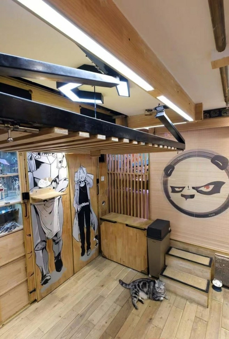 卧室设计暗藏专业投影幕布,一键开启家庭影院模式,同时兼顾隔温遮光;楼下的客厅则是真正的“全能娱乐中心”:能在麻将室、K歌房与沉浸式电竞房之间自由切换……房子里住着“豆丁92”和他的女朋友,还喂了两只猫、三条鱼。