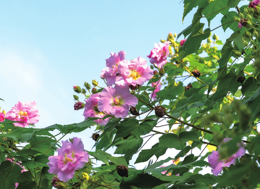 10月15日,成都金沙滨河公园,芙蓉花盛放。 杨涛 摄