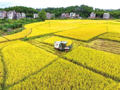 10月23日是霜降节气,农民驾驶收割机在广西梧州市万秀区夏郢镇收割晚稻。新华社发