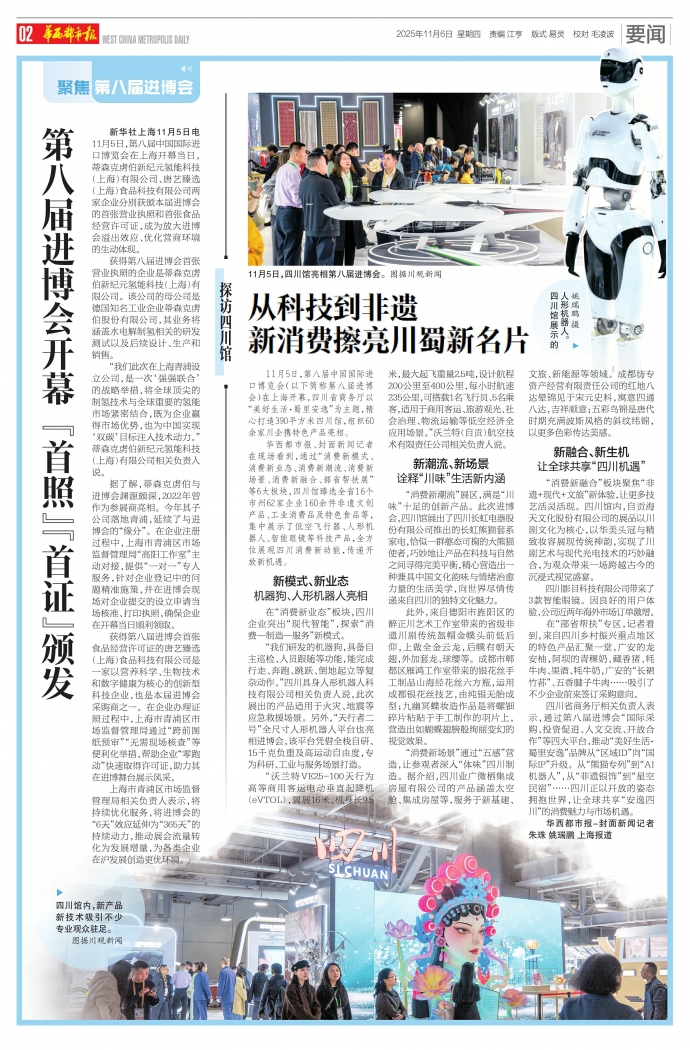 四川省商务厅相关负责人表示,通过第八届进博会“国际采购、投资促进、人文交流、开放合作”等四大平台,推动“美好生活· 蜀里安逸”品牌从“区域ID”向“国际IP”升级。从“熊猫专列”到“AI机器人”,从“非遗银饰”到“星空民宿”……四川正以开放的姿态拥抱世界,让全球共享“安逸四川”的消费魅力与市场机遇。
