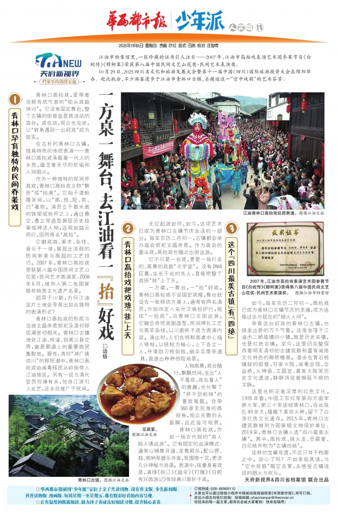 这样的宝藏非遗,不应只存于档案之中。动心了吗?不如亲临其境,与“空中戏剧”隔空击掌,去感受古镇流动的烟火与欢乐。