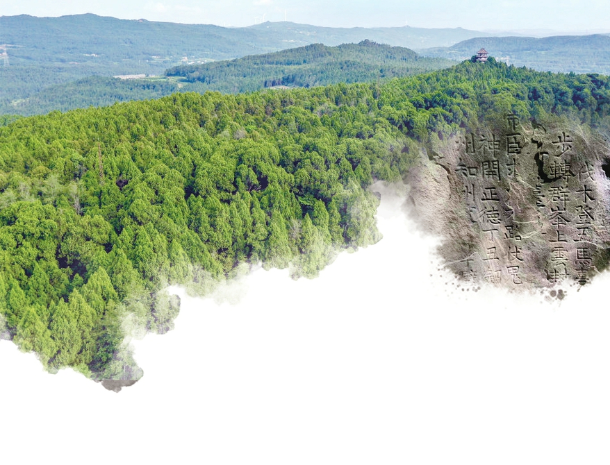 2023年7月25日拍摄的位于广元市剑阁县的翠云廊。 图据新华社客户端第四次全国文物普查中新发现的明代李璧登五马台题刻。受访者供图