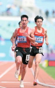 11月20日,第十五届全运会男子10000米项目云南队选手蒋发坤、杨绍辉在比赛中。 新华社发