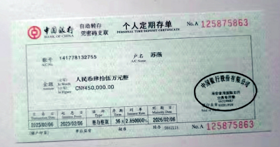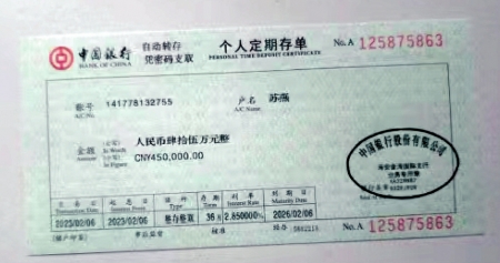 网店客服给记者发来的银行存单。聊天截图