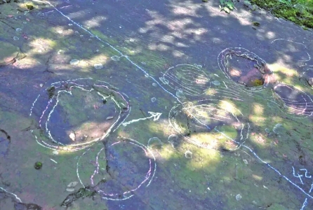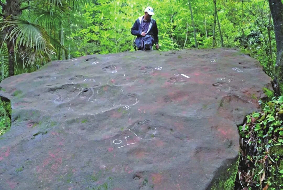 黄荆镇汉溪村三组石凤窝面积100亩的石面上分布蜥脚类(食草)恐龙行迹化石。