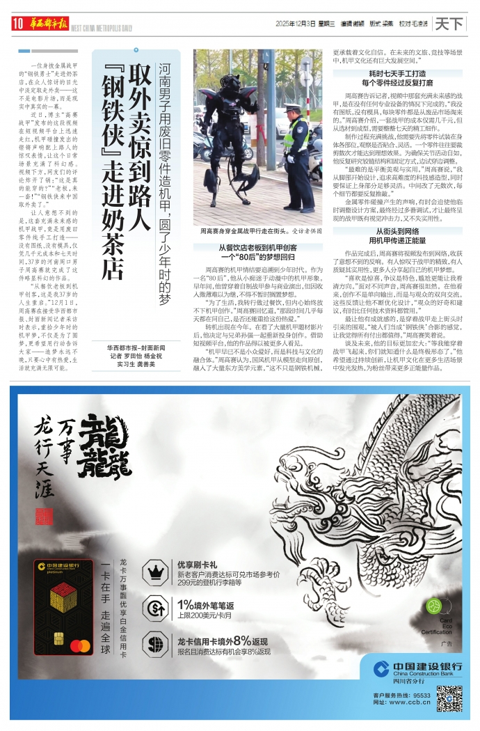 “钢铁侠”走进奶茶店 取外卖惊到路人