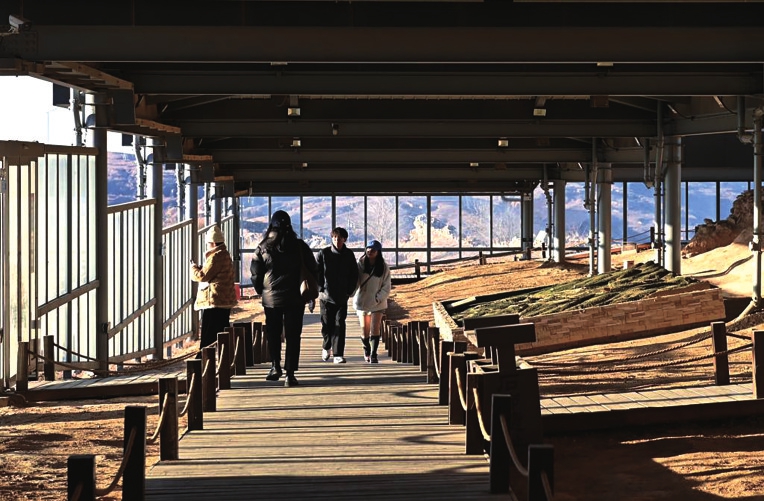 游客在石峁遗址参观。