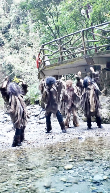 巴山大峡谷景区“野人”NPC和游客互动。 受访者供图