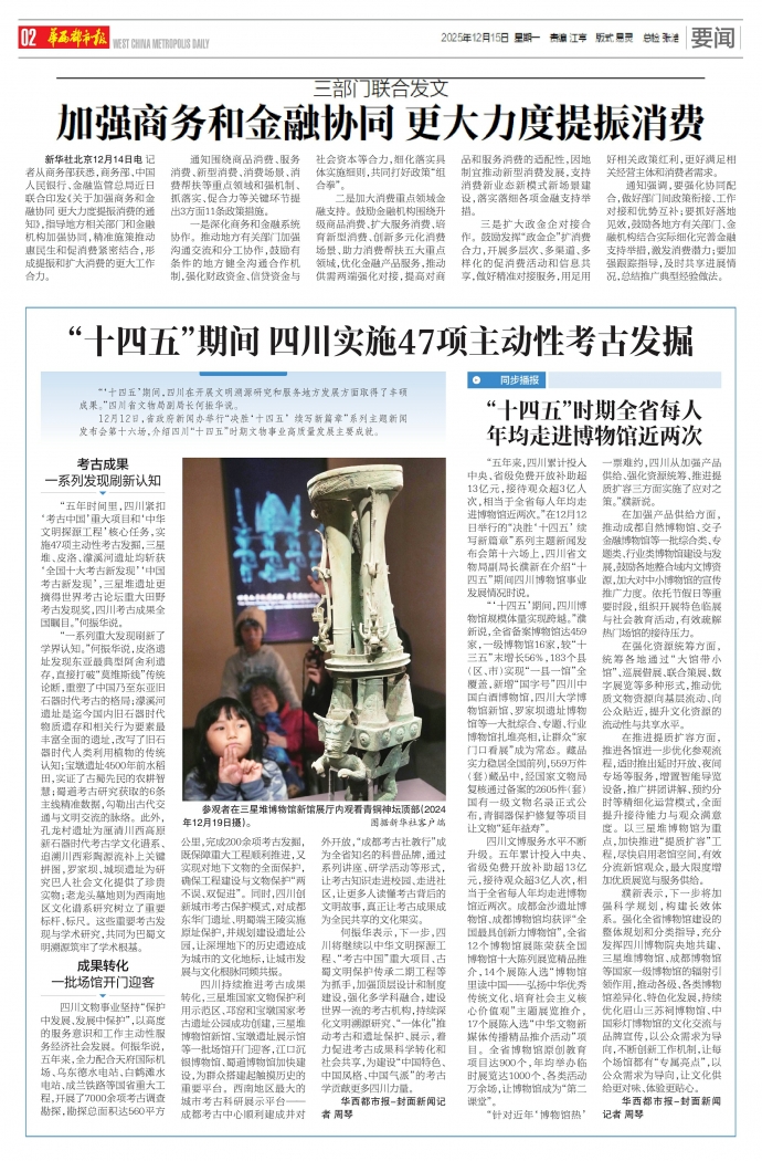 新华社北京12月14日电 记者从商务部获悉,商务部、中国人民银行、金融监管总局近日联合印发《关于加强商务和金融协同更大力度提振消费的通知》,指导地方相关部门和金融机构加强协同,精准施策推动惠民生和促消费紧密结合,形成提振和扩大消费的更大工作合力。