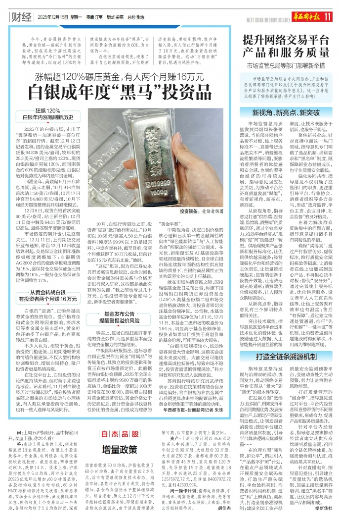 市场监管总局质量发展局副局长张蕾蕾说,当前部分网售产品货不对板、线上服务标准不一、直播带货选品把关不严、消费维权流程繁琐等问题,既影响着消费者的体验感和安全感,也制约着平台经济的可持续发展。指导意见回应社会关切,为推动平台经济高质量发展“赋能”,有着新视角、新亮点、新突破。
