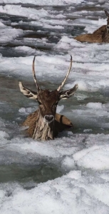 接警后,中扎科派出所立即组织民辅警赶赴现场救助。到现场后,民辅警发现被困的是国家一级保护动物白唇鹿。参与救助的村民尼夏介绍,白唇鹿是在过江觅食时被困于冰河之中。