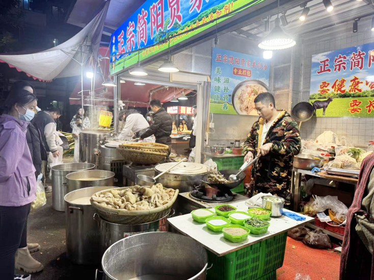 成都小关庙街羊肉飘香。