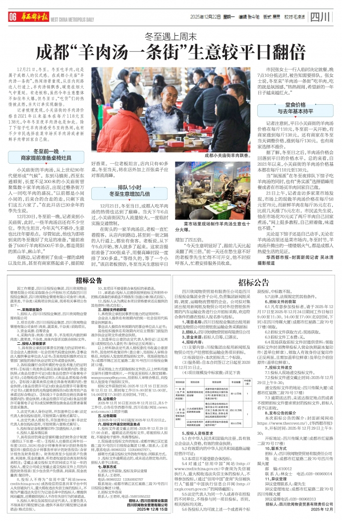 无论是下馆子还是自己动手,无论在羊肉汤店里还是菜市场内,冬至时节,羊肉汤升腾出的一缕缕烟火气,都是成都人热爱生活的见证。