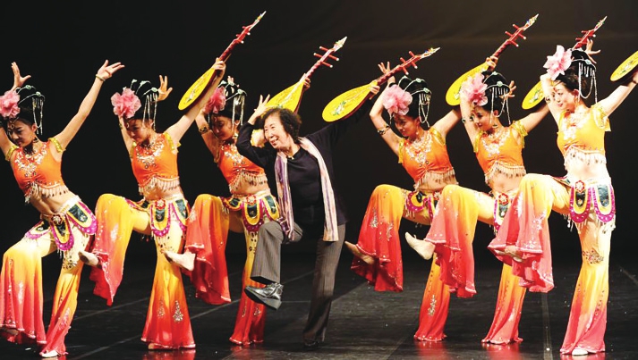 高金荣与《飞天》的演员们一起表演敦煌舞。