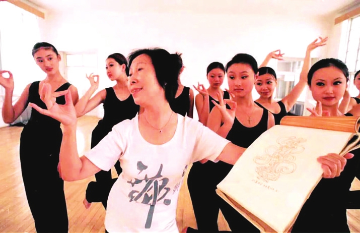 她一边教学,一边研究,在不懈探索中,逐渐解开敦煌壁画舞蹈的密码:赤足轻舞,眼神或灵动或含情;脚形或勾或翘或歪;体态饱含张力,出胯冲身形成三道弯……