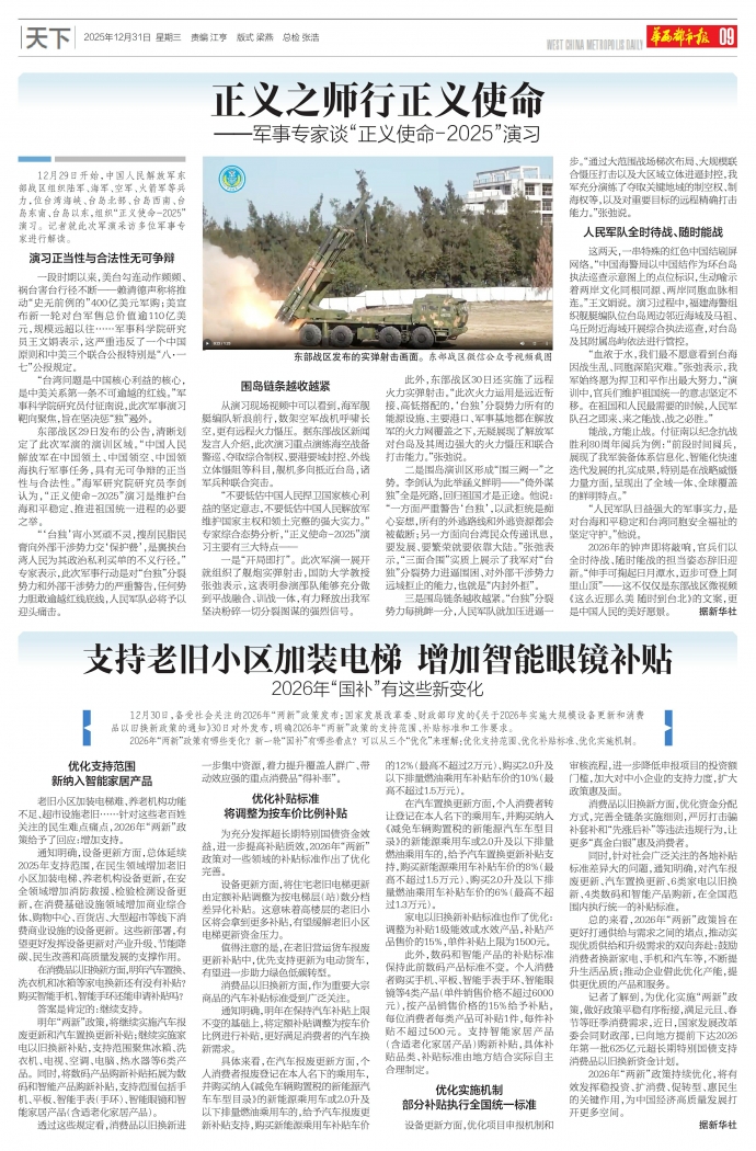 12月29日开始,中国人民解放军东部战区组织陆军、海军、空军、火箭军等兵力,位台湾海峡、台岛北部、台岛西南、台岛东南、台岛以东,组织“正义使命-2025”演习。记者就此次军演采访多位军事专家进行解读。