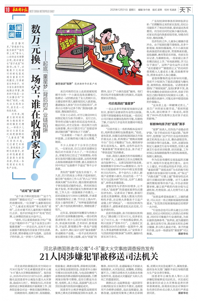 国恩老年公寓负责人等21人因涉嫌犯罪被移送司法机关。河北省纪委监委同步成立火灾事故追责问责审查调查组,依规依纪依法对事故中负有责任的45名公职人员进行严肃追责问责。 据新华社