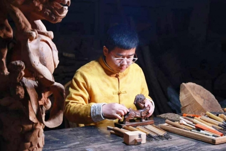 “先用3D打印做出设计模型,再在木头上进行创作,效率和精度都提高了。”何飞说,他最近正在创作“青城山下白素贞”等本地文化主题的浮雕文创,“让木雕走进更多年轻人的生活。”