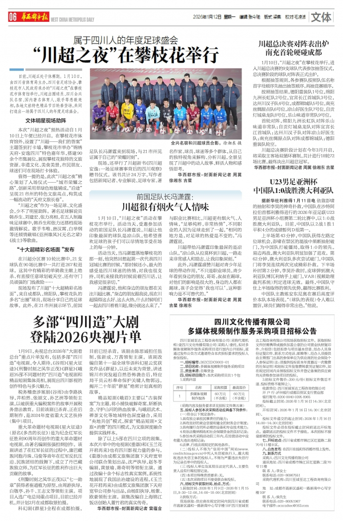 1月10日,“川超之夜”在攀枝花举行,进入川超总决赛的9支球队代表参加抽签仪式,总决赛阶段的球队对阵表正式出炉。