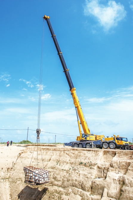 陕西省考古研究院寨沟遗址考古队在陕西清涧瓦窑沟墓地M1号墓葬提取马车。