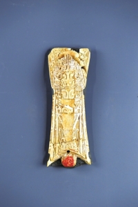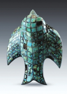 陕西清涧后刘家塔墓地出土的镶绿松石铜饰。
