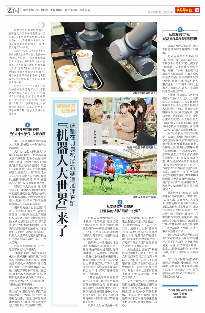 “我们的目标是构建‘品牌展示、产品销售、维修保养、产业孵化、场景应用’的全生命周期生态闭环,让机器人‘一生都在成都平台内循环’。”兴锦商投公司相关负责人说。