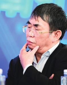 2017年11月4日,聂卫平在2017“象屿杯”海峡两岸围棋与人工智能邀请赛人机配对赛中思考。 新华社发