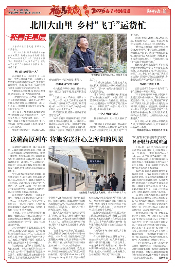 同样的热情也来自海外。欧美、日韩、东南亚的旅客也成为了高原小站里的熟面孔。英国游客Mark Berry和母亲Jacquie Berry从北京、西安一路游玩至成都,专程搭乘这趟列车前往九寨沟。Jacquie赞叹窗外梯田村寨别具一格,Mark则对冬日冰封的湖面与雪挂满怀期待,他直言:“中国的火车干净、准时,旅途非常舒适。”