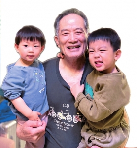 任有羽的父亲和孙子、孙女在一起。