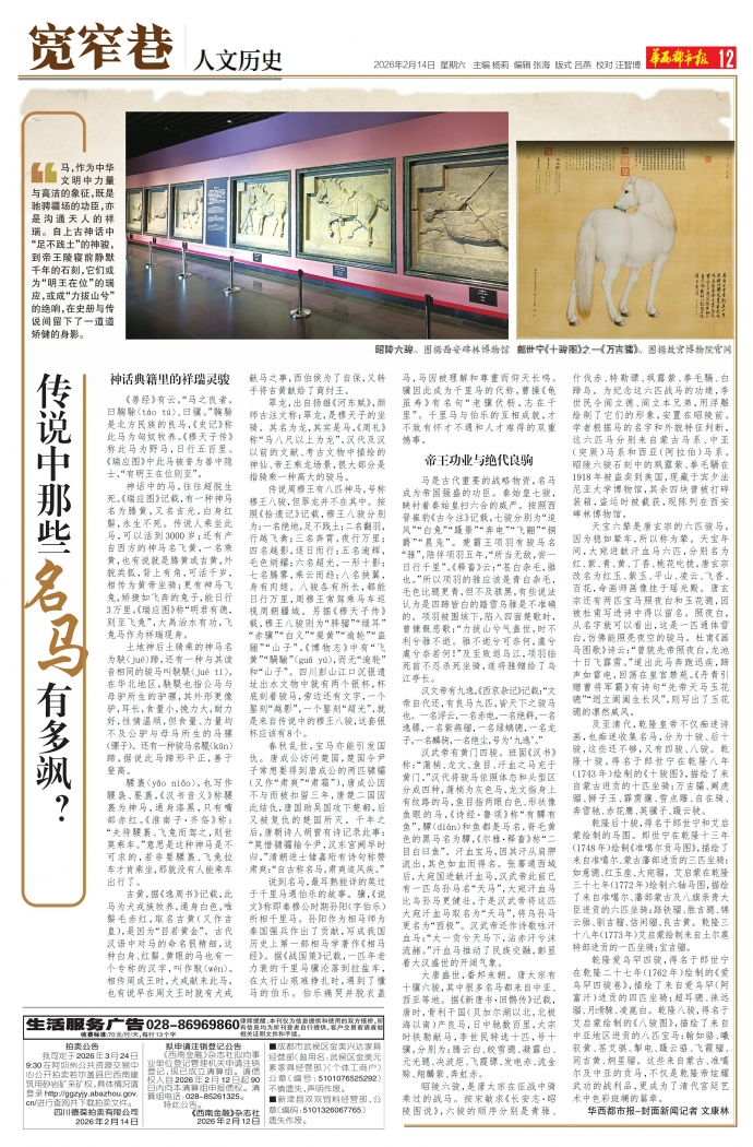 马,作为中华文明中力量与高洁的象征,既是驰骋疆场的功臣,亦是沟通天人的祥瑞。自上古神话中“足不践土”的神骏,到帝王陵寝前静默千年的石刻,它们或为“明王在位”的瑞应,或成“力拔山兮”的绝响,在史册与传说间留下了一道道矫健的身影。