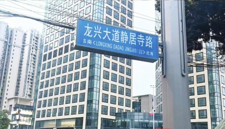 2月25日傍晚,记者来到净居寺片区实地走访,发现该地路牌的确出现“净居寺”“静居寺”两种写法。记者看到了多处标注“龙兴大道静居寺路”的路牌,且在该路段的门牌上,写的也是“静居寺路××号”。而在附近的多条街道,则又被命名为净居寺西街、净居寺南街,地铁站也标注为“净居寺站”。