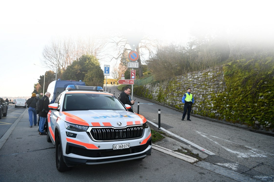 2月26日在瑞士日内瓦阿曼驻日内瓦外交代表机构附近拍摄的警车。新华社发