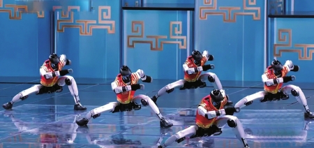 马年央视总台春晚舞台上的机器人在表演节目。视频截图