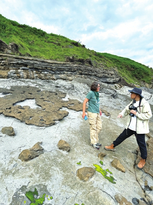邢立达说,能在这里发现蜥蜴行迹化石颇为不易,“蜥蜴的行迹又小又轻。很多化石如果没在夏季被及时采集和保护,冬天的海浪、风暴可能就把这些化石破坏掉了。”而且有的石头太重,五六个人都搬不动,还要经过崎岖的乡间土路,“有时我们就请当地驻军帮忙,用直升机吊运。”