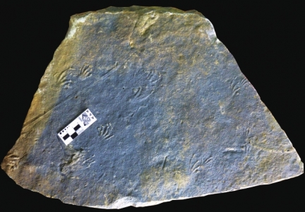 西班牙阿斯图里亚斯发现的蜥蜴行迹岩板。