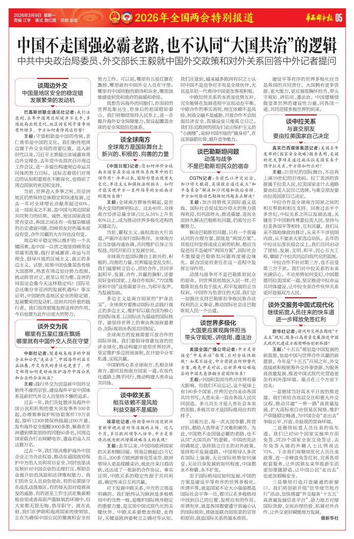 中共中央政治局委员、外交部长王毅就中国外交政策和对外关系回答中外记者提问