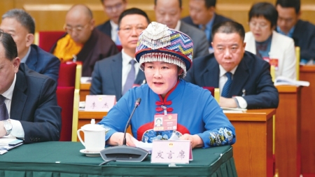 3月6日四川代表团开放日现场,胡晓玲正在发言。 梁家旗 摄