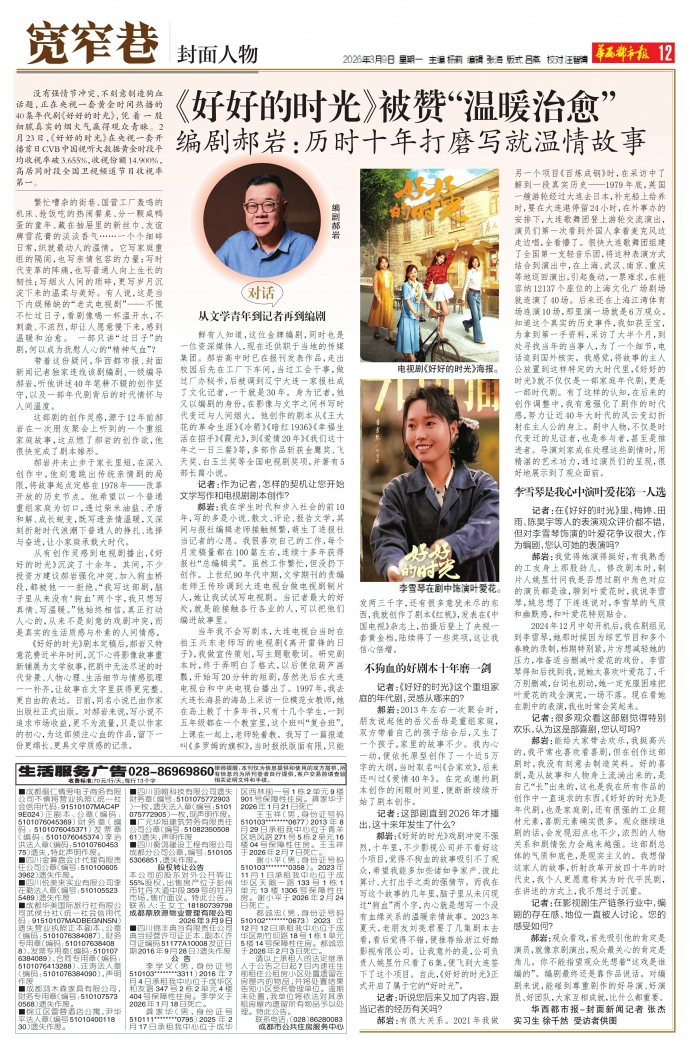 带着这份疑问,华西都市报、封面新闻记者独家连线该剧编剧、一级编导郝岩,听他讲述40年笔耕不辍的创作坚守,以及一部年代剧背后的时代情怀与人间温度。