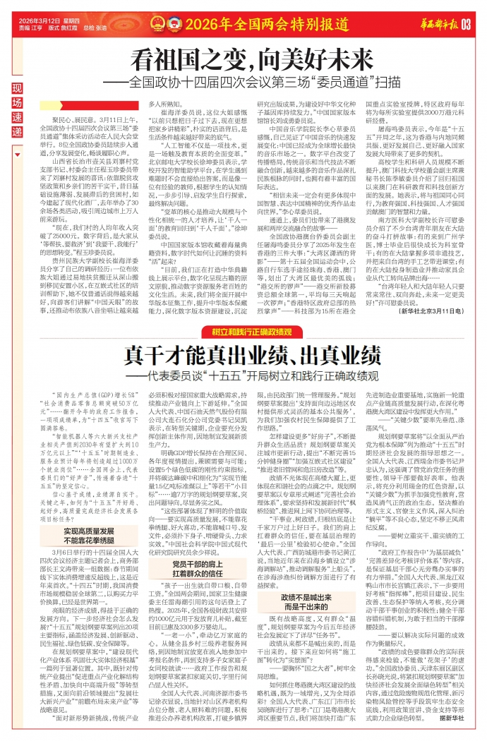 “智能机器人等六大新兴支柱产业相关产值到2030年有望扩大到10万亿元以上”“‘十五五’时期制造业、服务业预计每年将创造超过1000万个就业岗位”……全国两会上,代表委员们的“好声音”,传递着奋进“十五五”的坚定信心。