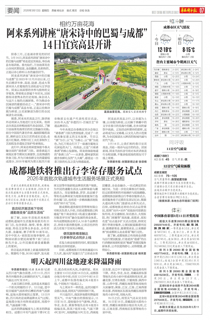 目前,成都地铁日均客流量超615万人次,强大的“流量引力”正形成全客层覆盖、全业态融合、一站式满足的站城空间。为进一步优化乘客出行体验,经过前期周密的市场调研与现场踏勘,成都地铁创新推出行李寄存服务试点,该项服务将于近期在东郊记忆站、熊猫大道站两大热门旅游站点率先试点。后续,成都地铁还将结合试点运营情况,按照“站内+站外”双线协同思路加快布局,在交通枢纽、知名景点、大型医院、热门商圈等“高流量、高需求、高知名度”站点逐步扩大试点范围,持续完善行李寄存服务,让便民配套跟着市民走、跟着游客走、跟着需求走,让来蓉游客“到成都街头走走看看”畅行无忧。