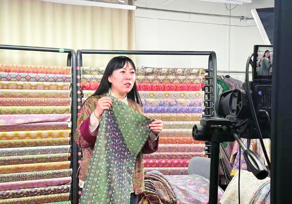 而在四川依格尔纺织品有限公司,蜀锦寻找的是一种更具声量的“现代语法”,“秀场”不在展厅,而在直播间。企业将华丽的蜀锦面料直接供应给屏幕那端的国风穿搭主播,甚至把直播间放在丝绸博物馆里,主播身后就是历经沧桑的古老织机。“直播不仅能直达消费者,还能即时获得反馈。”该公司总经理助理杜璋介绍,自去年开始直播以来,企业累计实现线上线下销售1092万元。