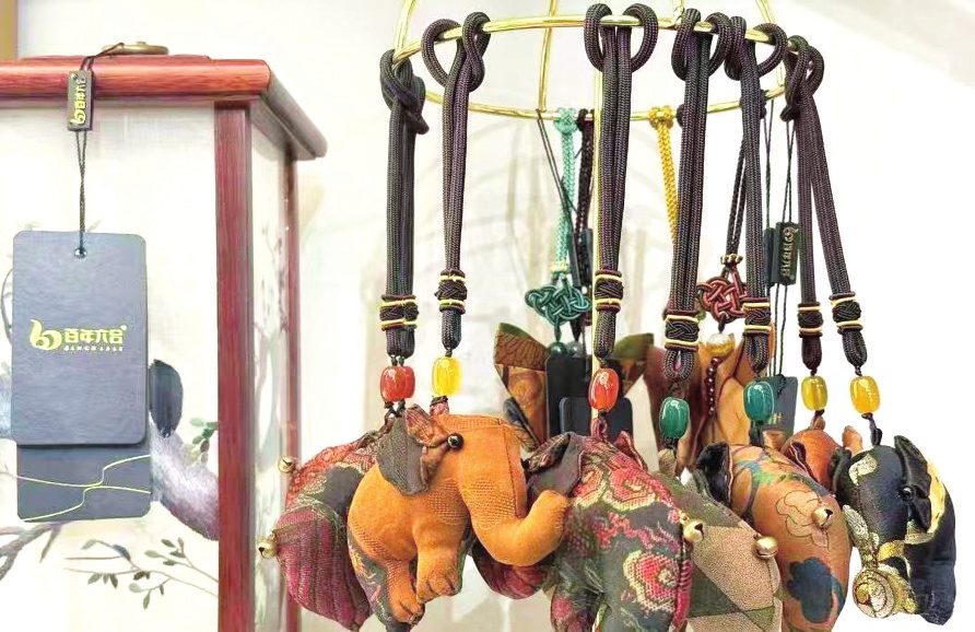 六合集团生产的丝绸文创车挂。