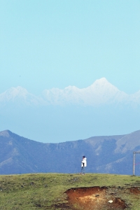 成都作为千万级人口的大城市,从天府广场到贡嘎山直线距离200多公里。站在合适的点位,镜头可以拍下眼前的茶园、果园,远处的平原、丘陵,三四千米的低山,最后是7000多米的贡嘎主峰,层层叠叠的景致浓缩在一个画面里,给人一种难以言表的震撼感。