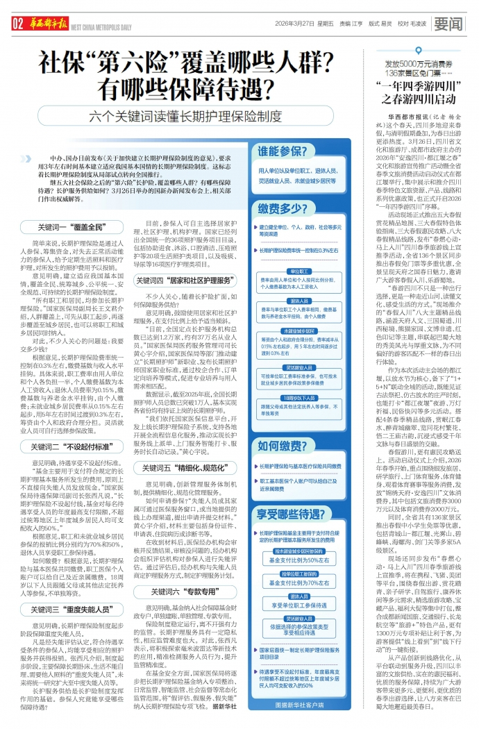 春假游川,更有惠民攻略送上。活动启动仪式上介绍,2026年春季开始,重点围绕银发旅居、研学旅行、上门体育服务、体育健身、观看体育赛事等服务消费,发放“锦绣天府·安逸四川”文体消费券,其中包括文旅消费券3000万元以及体育消费券2000万元。
