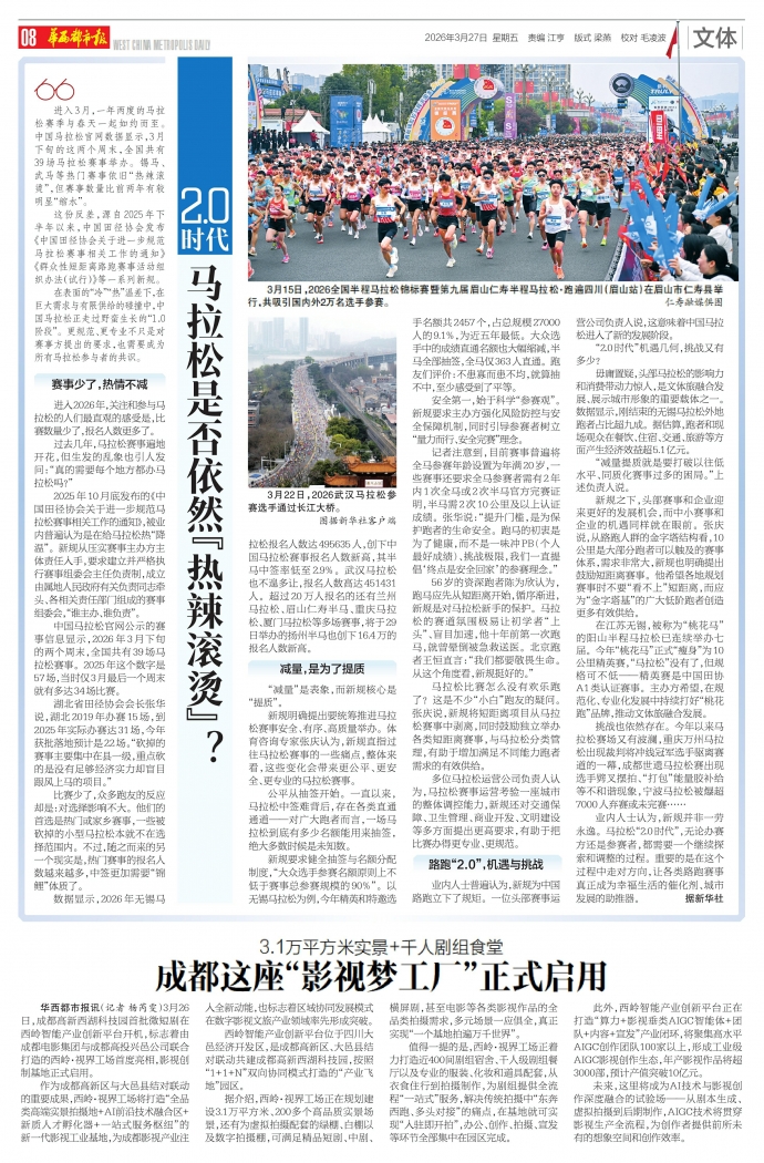 华西都市报讯(记者杨芮雯)3月26日,成都高新西湖科技园首批微短剧在西岭智能产业创新平台开机,标志着由成都电影集团与成都高投兴邑公司联合打造的西岭·视界工场首度亮相,影视创制基地正式启用。